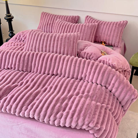 Winter Fleece Fluffy Polyester King Size Bedding Bedcover Set 1 Duvet Cover Zipper Closure 2 Pillow Cases 3Pcs Bedding Sets